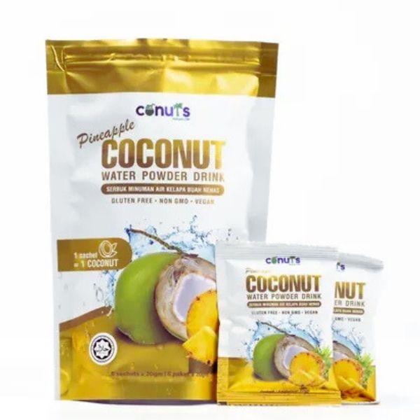 Conuts coconut water drink is a natural coconut Isotonic beverage drink in a sachet form. Each sachet makes 280ml to 300ml of coconut water drink which has a nutrient equivalent to one piece of fresh coconut.