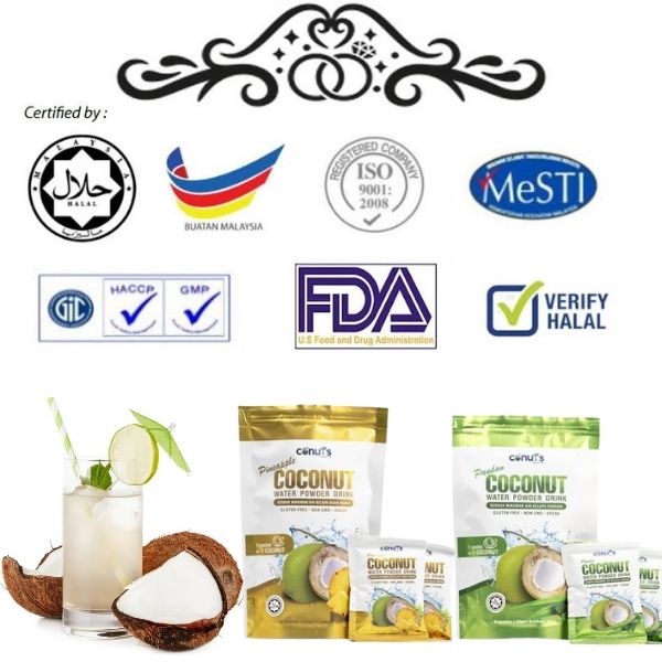 Conuts coconut water drink is a natural coconut Isotonic beverage drink in a sachet form. Each sachet makes 280ml to 300ml of coconut water drink which has a nutrient equivalent to one piece of fresh coconut.
