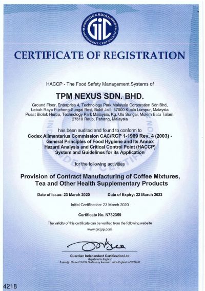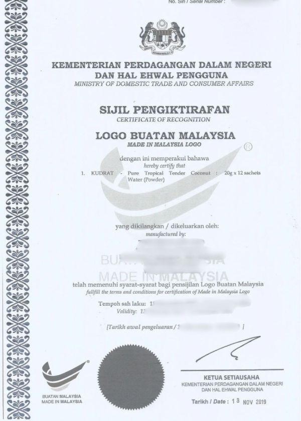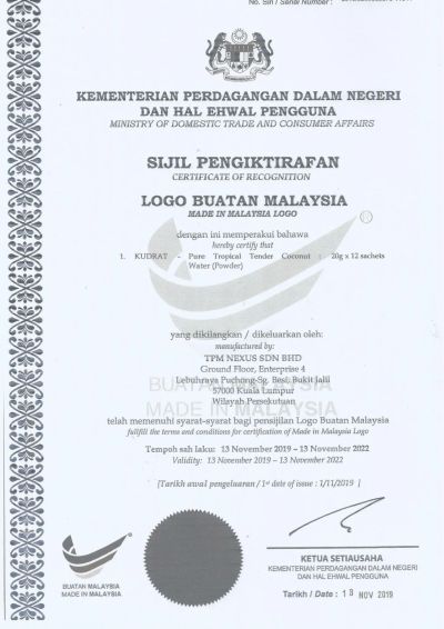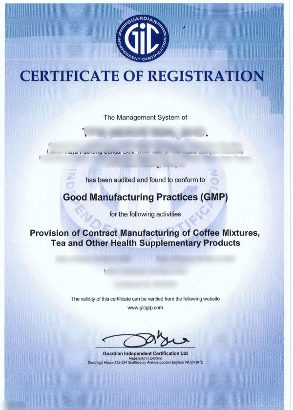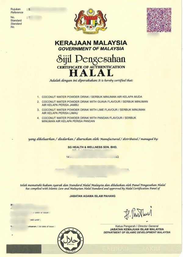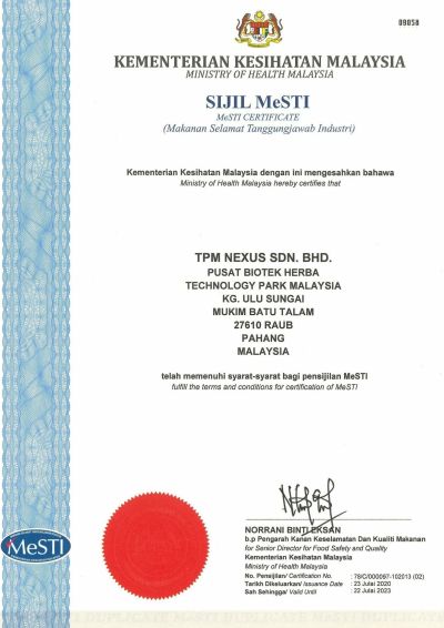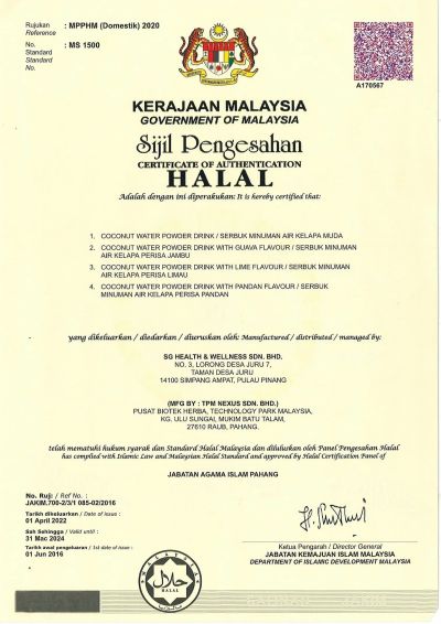 SG has also obtained various licenses from government such as HALAL , KKM (Health Ministry approval), Mosti, GHDP , GMP and HACCP for its products .